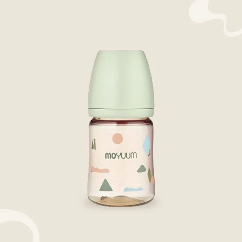 MOYUUM เป็นขวดนมเด็กที่ผลิตจากวัสดุ PPSU ปลอดภัยต่อลูกน้อย คุณแม่ไร้กังวล มาพร้อมกับจุกนมที่ใช้ได้กับเด็กทารก จนถึงอายุ 2 เดือน ตัวขวดนมคอกว้าง ทำให้ง่ายต่อการชงนม และทำความสะอาด น้ำหนักเบา สามารถปรับเปลี่ยนเป็นที่จับขวดนมได้ ขึ้นอยู่กับการใช้งานสำหรับเด็กแต่ละช่วงวัย และสามารถเปลี่ยนเอาจุกนมออกและใส่หลอดดูดหัดดื่มเพื่อฝึกดื่มได้ ทนความร้อนได้ถึง 200 องศาเซลเซียส มีหลายสี และหลายลวดลายน่ารัก น่าใช้