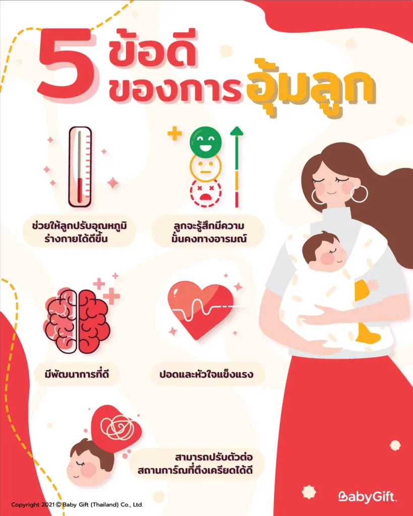 - การอุ้มลูกจะช่วยให้ลูกปรับอุณหภูมิร่างกายได้ดีขึ้น
