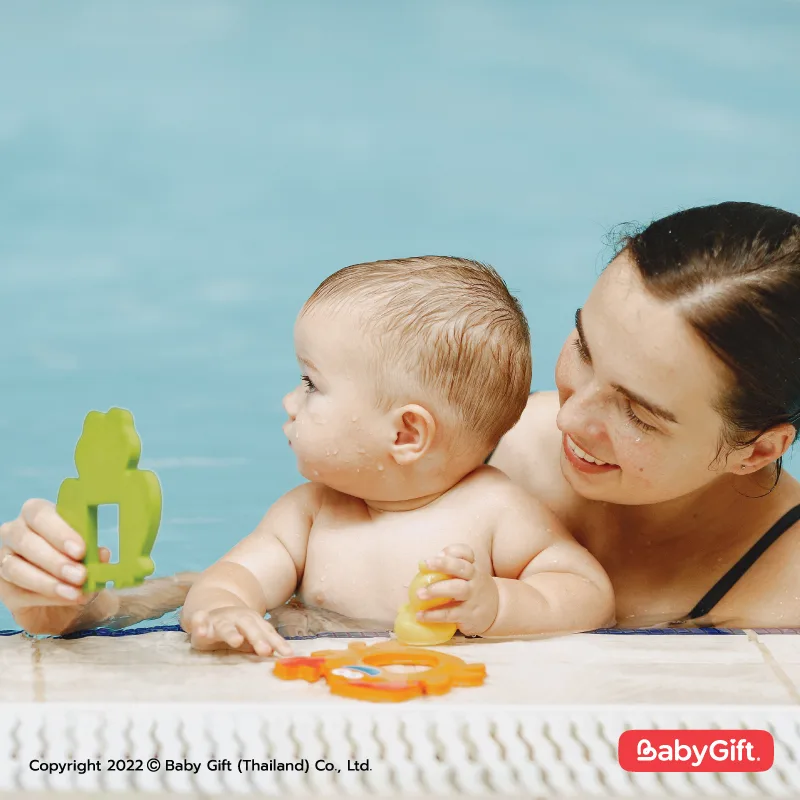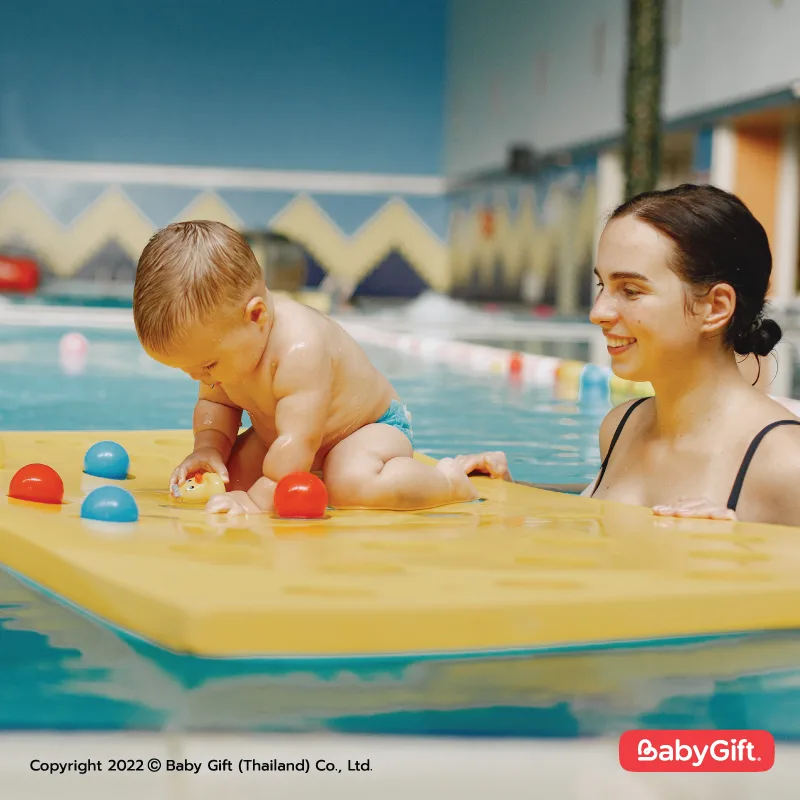 • ของเล่นลอยน้ำ เพื่อดึงดูดความสนใจลูก ให้ลูกรู้สึกมีความสุขระหว่างฝึกว่ายน้ำด้วย