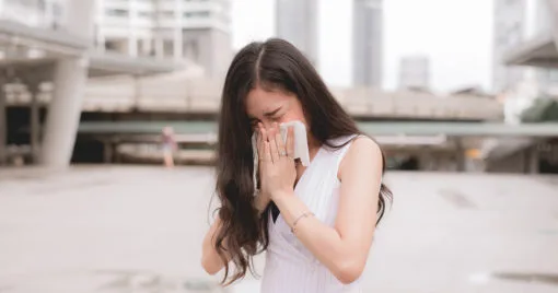 โรคทางเดินหายใจเป็นโรคที่เกิดจาก PM2.5 ที่พบได้มากที่สุด เนื่องจากทางเดินหายใจเป็นด่านแรกที่ต้องเผชิญกับเจ้าฝุ่นพวกนี้ การที่เราหายใจเอาฝุ่นเข้าไปจำนวนมากนั้นจะทำให้เรารู้สึกไม่สบายจมูก โรคทางเดินหายใจที่เรารู้จักกันดี เช่น โรคหอบหืดนี่เองล่ะค่ะ