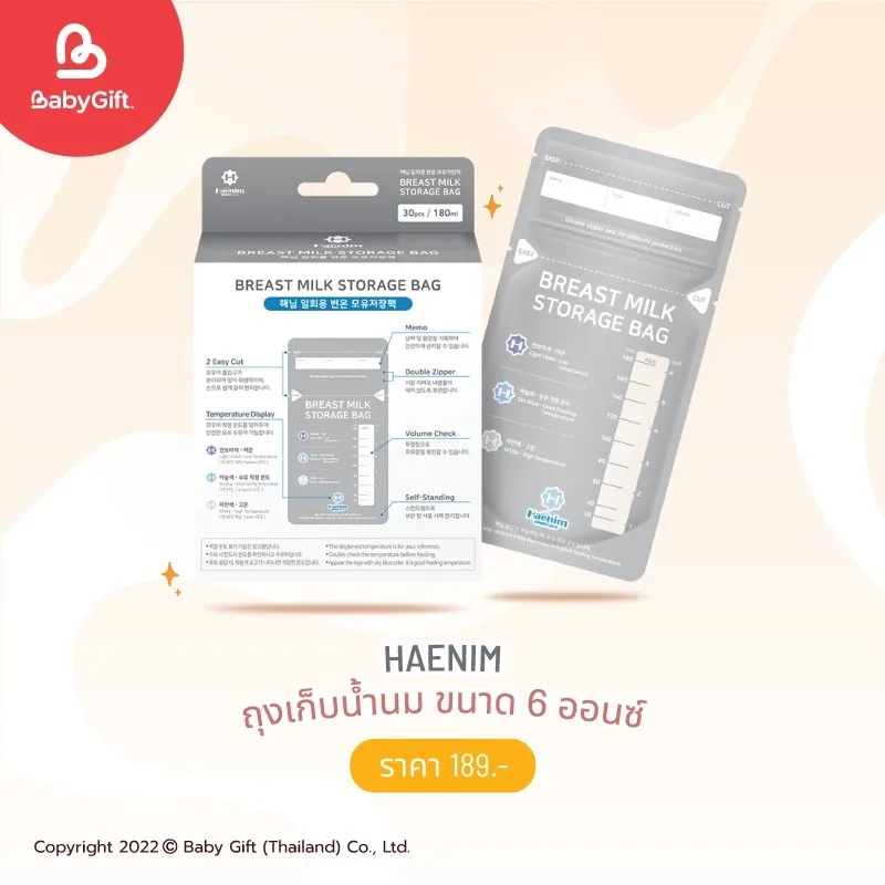 คุณแม่ต้องใช้ขวดนม หรือ แก้ว รองน้ำนมระหว่างนวดด้วยนะคะ เนื่องจากการบีบนวดในลักษณะนี้ จะมีน้ำนมไหลพุ่งออกมาด้วย เป็นการเคลียเต้านม ให้นมเกลี้ยงเต้า คุณแม่สามารถเก็บสต็อกน้ำนมเข้าถุงนมได้เลยค่ะ แนะนำแบรนด์ HAENIM ถุงเก็บน้ำนม ขนาด 6 ออนซ์ เป็นถุงเก็บน้ำนมที่สามารถฉีกได้เลย เลี่ยงการสัมผัสเชื้อโรคจากกรรไกร สามารถเช็กอุณหภูมิน้ำนมแม่ได้ และยังช่วยลดการเหม็นหืนได้เป็นอย่างดีด้วยค่ะ