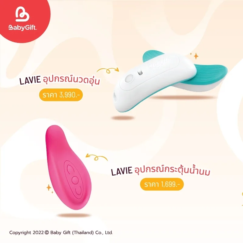 หากอยากประหยัดเวลามากขึ้น ไม่ต้องหาผ้าชุบน้ำอุ่นหรือถุงน้ำร้อนให้วุ่นวาย ปัจจุบันคุณแม่สามารถใช้อุปกรณ์นวดอุ่นได้เลย เพียงเปิดปุ่ม แล้ววนคลึงที่เต้านม ก็ช่วยนวดอุ่นได้แล้วค่ะ แบรนด์ที่หาซื้อได้ง่ายจะมีแบรนด์ LAVIE อุปกรณ์นวดอุ่นกระตุ้นน้ำนม และ LAVIE อุปกรณ์กระตุ้นน้ำนม สามารถใช้ได้บ่อยเท่าที่ต้องการเลยนะคะ