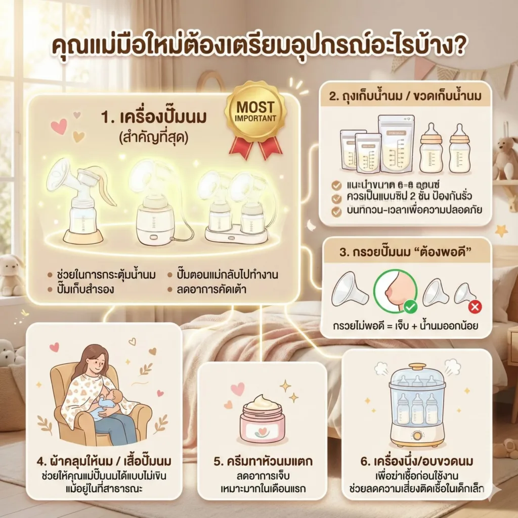 คุณแม่มือใหม่ต้องเตรียมอุปกรณ์อะไรบ้าง? (สำคัญมาก)